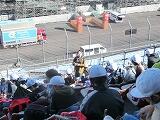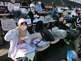お昼はロードコースを見下ろす観客席にて。本日、走行している車両はありませんでしたが、おうちの方に作っていただいたお昼ご飯をおいしくいただきました。