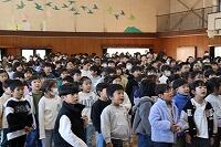 次に校長先生のお話がありました。3学期=0学期として次の学年に進級する準備の時間にしてほしいという話がありました。また、あいさつ・家での読書・自分から進んで学習することの3つに特に力を入れてがんばってくださいという話もありました。最後に全校生で校歌を3番まで斉唱して式は終わりました。
