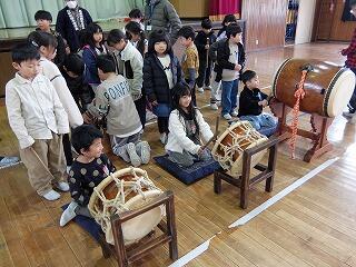 3年生の総合的な学習で吹上町の伝統について学習を進めています。今回は、野中町のお囃子保存会の方々に来て頂きました。目の前で演奏を聞いたり、実際に楽器に触れたりして児童はお囃子に興味をもっている様子でした。保存会の歴史や楽器についてのお話を真剣に聞き、一生懸命メモをとっていました。