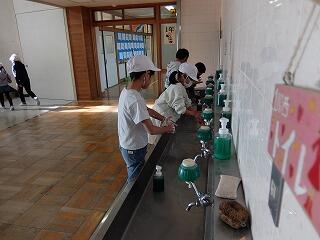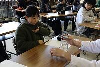 保健委員の人に手洗いがきちんとできているかチェックしてもらいました。
