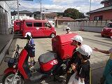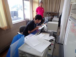救命の様子を消防署通信指令課と映像でつないで、救命法について指示を受けています。