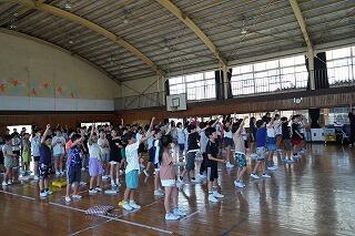 先生方も舞台に上がりました 音楽に合わせて体で表現しました