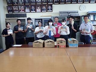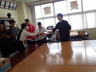 5・6年担任等が代表して贈呈を受けました。 右の写真は今回贈呈されたアルファ米ビザキットです。
