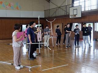 チャレンジランキングでは、5種目のミニゲームを活動班ごとに行い、その合計点数で競います。友達と協力をするゲームで声をかけ合いながら楽しく活動していました。
