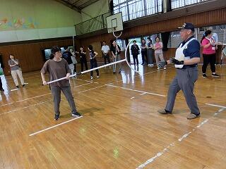 さすまたを持って集合 さすまたで不審者に対応する訓練