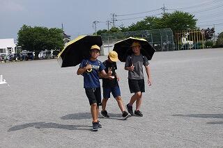 毎日暑い日が続いています。本日13時現在のWBGT計の値は30.3で厳重警戒レベルでした。31以上になると危険レベルとなるので、それに近い数値になっていました。学校では危険レベルになったときは、外遊びやプールでの活動を原則中止にして対策を取っています。下校時に関しては、児童の多くが対策を取っているので紹介いたします。