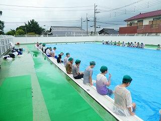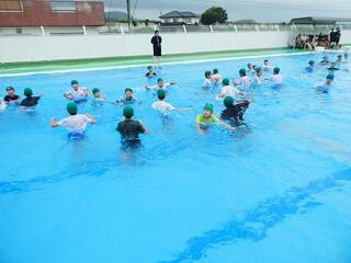 着衣のままプールサイドに集合 着衣のまま水の中に入ります