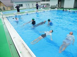 背浮きでできるだけ長く浮きました 空のペットボトルを使って背浮きしました