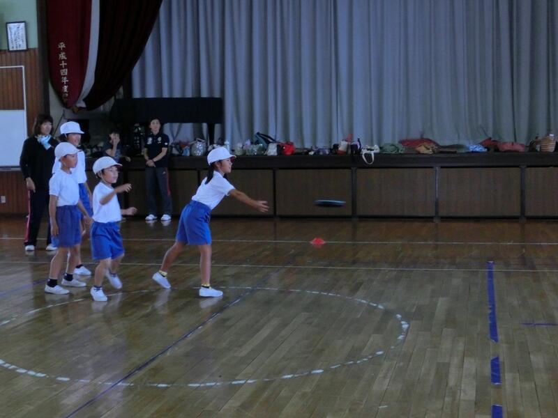 4チームに分かれて、「親子でドッジビー」をしました。和気あいあいと楽しい雰囲気の中で試合を楽しみましたが、親対子の試合では、お父さん、お母さんチームに勝とうと真剣勝負をする子ども達の姿が見られました。いい汗をかいて、みんなで楽しめたようでした。