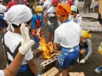 火おこし体験では、班ごとに役割分担を決め、協力して活動することができました。
