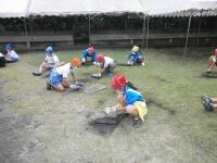 さつまいもの頭が見えると、さらに一生懸命土を掘り、さつまいもが取れると、大歓声があがりました。