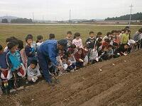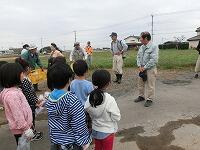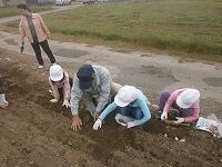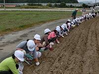始めに環境保全会の方からお話をお聞きし、植え方を教えていただきました。