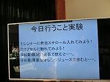 ・ オレンジジュースに重曹(重曹が胃薬に含まれている製品有り)を混ぜると、泡があふれ出そうになる様子を見て、「薬は、水で飲みます。」と答えてくれました。