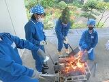 午後は活動交代。1組が小枝のマスコット作り、2組が杉板焼きを行いました。