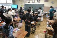 今回は、吹上中の体育館が改修工事中で使用できないため、吹上中の校長先生をはじめとする4名の先生が来校して実施しました。