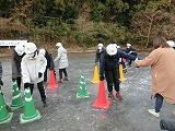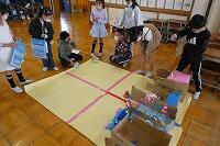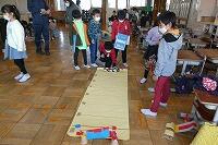 その後、4つのグループに分かれて、ピンポン玉はこびリレーやポーズ合わせなどを楽しみながら、中学生や他校児童との交流を深めました。