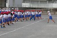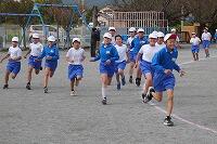 校庭を3つのコースに分けて、低・中・高学年が、4分間走+1分間歩き+3分間走の練習に取り組みました。