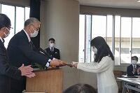 小・中学校を卒業する児童・生徒の良いところや今後の目標などを紹介したり、記念品を贈呈したりしました。