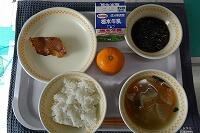 <今日の給食> ご飯・牛乳・サンマのみぞれ煮・小松菜の磯か和え・豚汁・栃木市産麦納豆