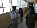 その後、家庭科室から出火したことを想定して、安全な経路を使って校庭に避難しました。