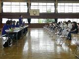 学校では、午後、体育館において、お子さんが来年度入学予定の保護者に向けた説明会を行いました。