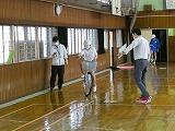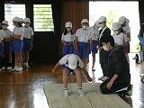 天候の関係で、体育館での実施となりましたが、投運動の基礎・基本を教えていただき、短時間の中で、投げ方のこつをつかめた児童がたくさんいました。