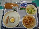 <今日の給食> カレーうどん・牛乳・野菜コロッケ・トマトサラダ・シモンちゃんいちごゼリー