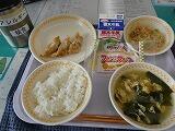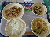 <今日の給食> ご飯・牛乳・さばのスタミナ焼き・昆布漬け・かみなり汁