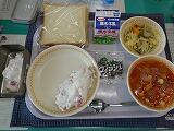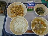 <今日の給食> ご飯・牛乳・麻婆豆腐・にらまんじゅう・パンサンスー
