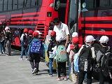 1・2年生混合のキラキラ班ごとに、大きなバス3台に分かれて乗車しました。