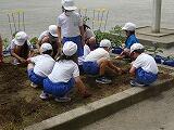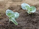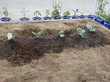 学校では、午前中、2年生が、職員室前の教材園で、キャベツの苗植えを行いました。