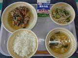 <今日の給食> ご飯・牛乳・豚肉のスタミナ炒め・キムチ和え・豆腐とわかめの味噌汁