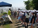 クラスごとの集合写真を撮り、バッタの原っぱに移動しました。