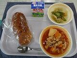 <今日の給食> ご飯・牛乳・モロのケチャップソース・五目きんぴら・豆腐とわかめの味噌汁
