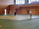 体育館では走り高跳び、校庭では短距離走やハードル走、長距離走、そして、砂場では走り幅跳びを行いました。