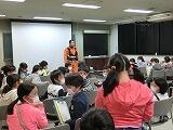 消防隊員の方から、消防署の仕事について詳しく説明をしていただいたり、映像も見せていただいたりしました。また、質問にも答えていただきました。説明をよく聞いたり、たくさんメモをとったりして意欲的に学んでいる様子が見られました。