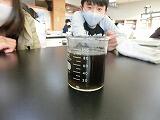 次に「薬を使う時の約束」を教えていただきました。薬は何で飲むのがよいか?実験をとおして、視覚的に理解しました。鉄剤(貧血治療薬)を水に入れると何の反応も示しませんが、緑茶に鉄剤を入れるとすぐに黒色に変化しました。オレンジジュースに重曹を加える実験では、ビーカーが泡であふれそうになり、薬は水で飲まないといけないことを学びました。ご多忙中にもかかわらず、授業をしていただき、半田先生ありがとうございました。