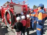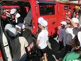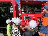 消防団の方々から、消防士と消防団の仕事の違いや消防車の説明を受けたあと、実際に消防車に乗せてもらいましたピース日頃、乗ることのない消防車に子どもたちは大興奮キラキラ