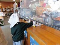お昼の放送では、読書に関する〇✕クイズを出しました。今日は、図書委員が考えた「この世界からサイがいなくなってしまう」と「もりのピザやさん」からの問題に挑戦しました。