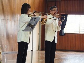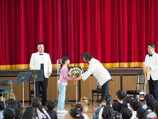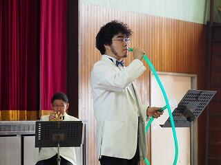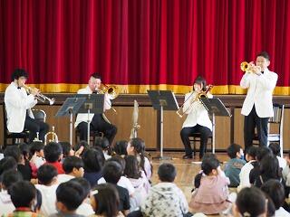 宮崎駿メドレーや手のひらを太陽になど児童に親しみのある曲をたくさん聴かせていただいたので、児童たちは、手拍子をしたり、演奏に合わせて歌ったりして、音楽を楽しむことができました。