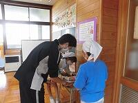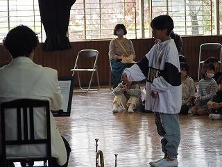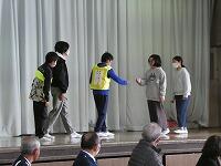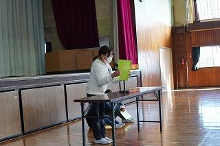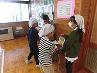 児童指導主任のお話           学習指導主任のお話の手伝いをする6年生