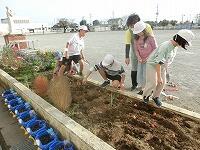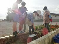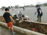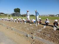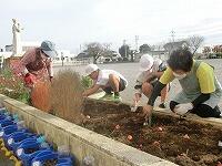 2校時、生活科の授業で野中町にチューリップの球根を植えに行きました。