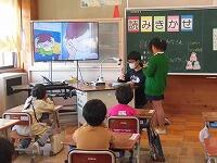 今日の朝の活動の時間に、図書委員会の5・6年生が、1・2年生に読み聞かせを行いました。読み聞かせをするのは緊張したけれど、1・2年生がとても真剣に聞いてくれたり、感想を言ってくれたりしたので嬉しかったと話していました。