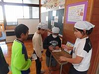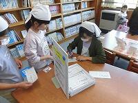 読書スタンプラリーは、2年生が参加しました。答えに困っている2年生には、図書委員のお兄さん、お姉さんがやさしくヒントを出してくれたので、無事にスタンプを4つ集めることができました。しおりをもらって大喜びの2年生です。