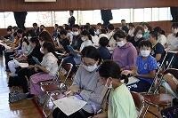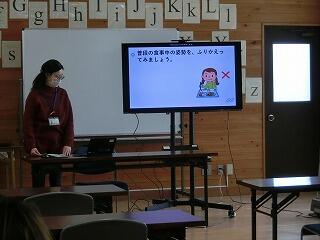 まず、養護教諭より姿勢に関する児童及び保護者アンケート結果について説明がありました。次に、学校栄養職員より、食事のときによい姿勢にするポイントについて説明がありました。そのあと吹上小学校医の横山孝典先生より「姿勢が健康に及ばす影響について」の講話がありました。最後に参加者で研究協議を行いました。