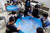 学校に戻った後は、見つけた枝を使って魚釣りゲームをしました。