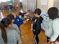 2年生の生活科「うごくうごくわたしのおもちゃ」で作ったおもちゃを使った
