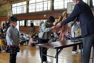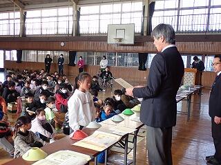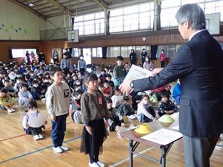 本日終業式前に表彰伝達がありました。12月6日に表彰集会をおこなったばかりですが、今回も多くの児童が表彰伝達を受けました。スポーツ関係ではフットベースボールやハンドボール大会のでの活躍に対する表彰がありました。河川愛護ポスターコンクールや山本有三記念「路傍の石」俳句大会での入賞に対する表彰がありました。
