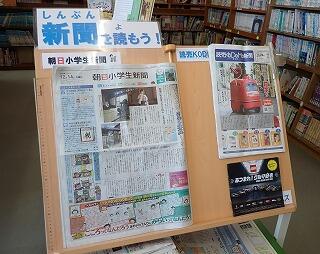 先生方や図書委員児童のおすすめの本コーナーや子ども新聞が読めるコーナーもあります。