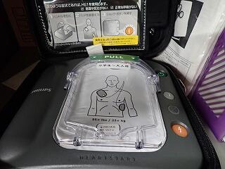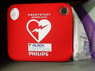吹上小学校には、児童の命を守るための機材・道具が配備されています。今回はこのうち2つを紹介いたします。AED(自動体外式細動器)とさすまたです。AEDは心停止になった人に電気ショックをあたえて、心臓の動きを正常に戻す機材です。職員室に1台配備されています。